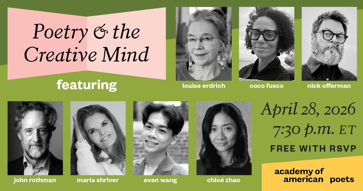 Hosted by Pulitzer Prize–winning poet Tracy K. Smith, the event will feature Academy Award–winning director Chloé Zhao; journalist, author, and former First Lady of California Maria Shriver; Pulitzer Prize–winning writer Louise Erdrich; stage and screen actor John Rothman; actor and author Nick Offerman; National Youth Poet Laureate Evan Wang; and interdisciplinary artist Coco Fusco. Additional readers will be announced.