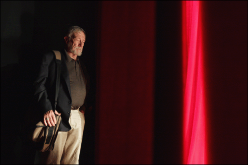 Gary Snyder preparing backstage before his panel at the 2008 Poets Forum.