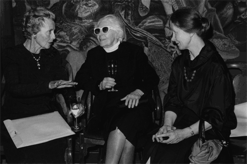 (Left to right) Marie Bullock conversing over drinks with Ezra Pound’s long-term mistress, Olga Rudge, and their daughter, Mary de Rachewiltz.