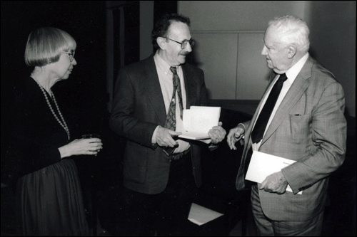 Jane Cooper with Philip Levine (left) and publisher Robert Giroux at the 1994 tribute to John Berryman. see more photographs and ephemera from the archive