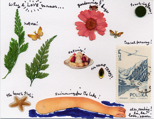 Postcard from Henri Cole. "Why I love summer". Postmarked June 2011.